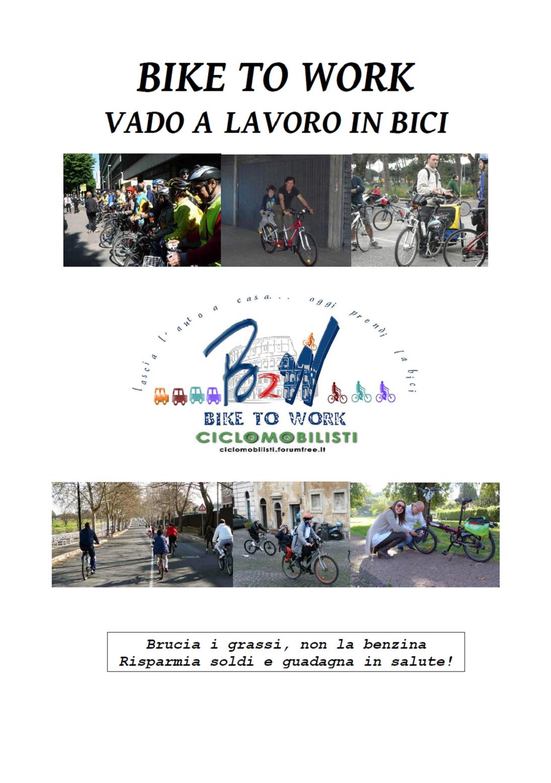 E’ stato aggiunto agli allegati dell’area tematica “attività fisica” un interessantissimo volume prodotto da un attivo gruppo di “Ciclomobilisti” di Roma. Il titolo della pubblicazione è “Bike to work” ed ha l’obiettivo di promuovere l’uso della bicicletta per recarsi al lavoro. Vengono ben spiegati i vantaggi dell’uso della bici in città e vengono sfatati falsi miti (o alibi?) comunemente utilizzati per rifiutare la bicicletta come mezzo di trasporto.
